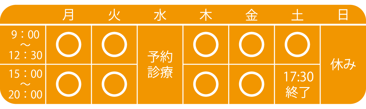 | 勤務時間 | 09:00~20:00 水曜日なし 09:00~17:30 土曜日 |